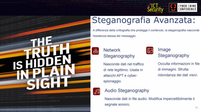 Il biennio 2022-2023 ha visto l’emergere di nuove frontiere dell’anti-forensics, con la diffusione di steganografia ibrida e l’uso di deepfake generati con intelligenza artificiale. «L’incorporazione di algoritmi di AI ha portato a tecniche più adattive e difficili da rilevare», ha spiegato l’esperto, sottolineando come queste possano «modificare il proprio comportamento in base all’ambiente e alla risposta difensiva».