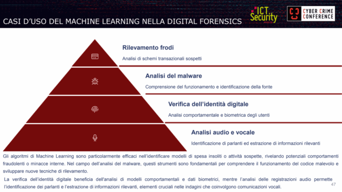 «L’applicazione del machine learning e delle intelligenze artificiali migliora l’analisi forense con risultati più accurati» ha affermato de Pinto, evidenziando come gli algoritmi di apprendimento automatico possano fornire «analisi più precise e complete rispetto ai metodi tradizionali».