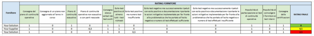Inoltre, al fine ultimo di avere un quadro sempre aggiornato e chiaro rispetto alla documentazione prodotta e consegnata dal fornitore, è possibile creare una mappa con dei rating per ognuno, da aggiornare con una cadenza almeno annuale.