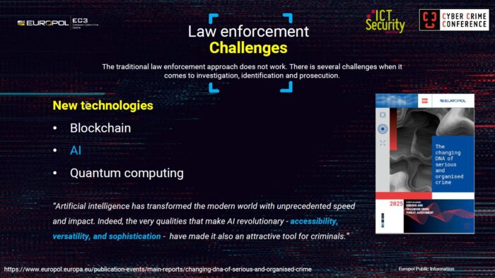 Iovini ha ricordato come i rapporti Internet Organised Crime Threat Assessment e ”Serious and Organised Crime Threat Assessment” (entrambi pubblicati da Europol) offrano un’analisi approfondita delle tendenze citate nell’intervento, a conferma del ruolo sempre più centrale del cybercrime nello scenario globale.