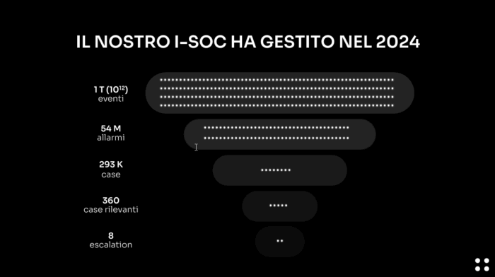 La seconda domanda – “Se mi accorgo di essere sotto attacco, cosa faccio?” – sposta l’attenzione dalla rilevazione alla risposta. Allo stesso modo, “Chi me lo dice? Ho le competenze per farlo?”, sono interrogativi che mettono in luce la necessità di disporre non solo di strumenti tecnologici adeguati ma anche delle competenze necessarie per interpretare gli allarmi e attivare le procedure di risposta appropriate.
