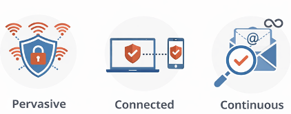 - Continuous Authentication: tramite l’utilizzo di algoritmiche intelligenti e adattative, abbatte l’assioma che una autenticazione riuscita, pur se con MFA o 3FA, equivalga a una legittimità continua, andando a convalidare costantemente che l’utente attuale rimanga chi afferma di essere.