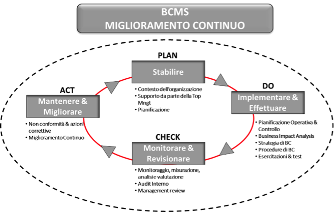 Tale approccio garantisce una gestione efficace dell’implementazione del BCMS, consentendo il miglioramento continuo e/o l’ampliamento del sistema nel tempo.