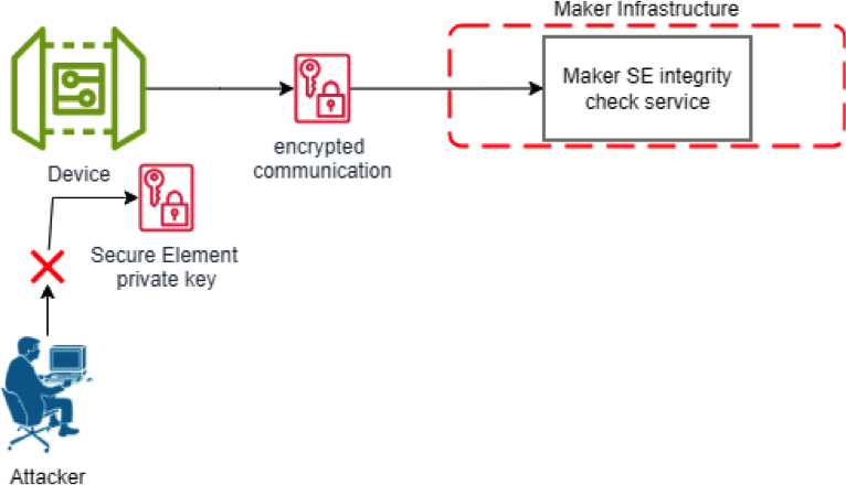 Al pari della verifica basata su hardware,le chiavi private conservate nel SE confermano l’identità del dispositivo senza necessità di esporre i dati sensibili. Quest’area protetta non si limita alla sola autenticazione, ma permette al dispositivo di fornire prove crittografiche sull’integrità del proprio stato software e hardware al sistema di onboarding. Inoltre, tentativi di impersonificazione come il cloning sono impediti grazie al fatto che le chiavi non sono estraibili. Anche se un hacker avesse accesso al dispositivo, non potrebbe ottenere la chiave privata necessaria per replicarlo su un altro hardware.