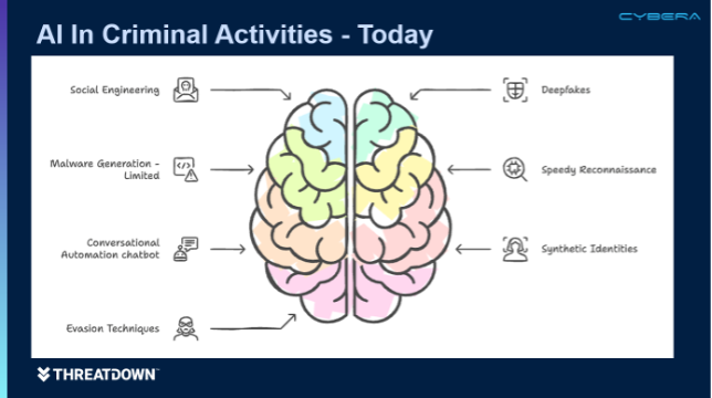 L’analisi si concentra poi sulle applicazioni concrete dell’intelligenza artificiale nelle attività criminali. Attualmente, i cybercriminali utilizzano l’AI principalmente per potenziare le tecniche di social engineering.