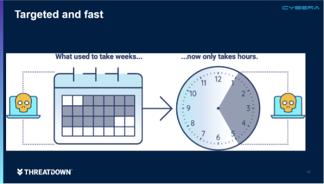 Altrettanto significativa è l’accelerazione dei tempi di attacco. Grazie all’ottimizzazione del codice e all’uso di tecniche automatizzate, gli attaccanti riescono ora a completare l’intero ciclo – dall’infiltrazione all’esfiltrazione dei dati fino alla richiesta di riscatto – in tempi drasticamente ridotti: «Stiamo vedendo che ultimamente gli attacchi entrano, fanno aggregazione di file, li zippano, li mandano fuori in un’ora, un’ora e mezza. Abbiamo visto anche 30 minuti, 20 minuti».