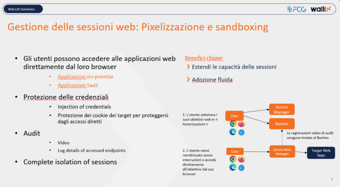 I limiti della tecnologia VPN vengono superati da Wallix attraverso soluzioni sofisticate, come la Remote Browser Isolation per l’accesso ai siti web. Come ha illustrato Cavroy, ciò permette «di avviare il Client Web in una sandbox e poi di inviare un’immagine con dei pixel; quindi non c’è nessuna relazione tra l’utente remoto e il target web».