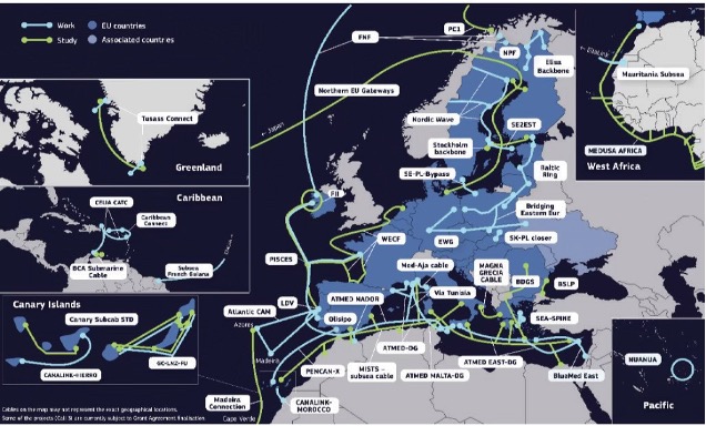 [12] Sul punto l’Unione Europea ha individuato una serie di progetti chiave in termini di posa e ampliamento delle strutture di cavi sottomarini che mirano a migliorare la connettività digitale del continente, in ottica di maggior controllo dei rischi di natura geopolitica e da minacce di natura cinetica. Tra questi, si ricordino, a titolo meramente rappresentativo, la posa dei cavi di Dunant, Havfrue e Amitie, miranti a rafforzare le connessioni dirette tra Europa e Nord America, i cavi SEA-ME-WE 6 ed Equiano, riferiti al rafforzamento della connessione euro-asiatica e, infine, le connessioni 2Africa, PEACE e Medusa, con riferimento all’Africa e al Medio Oriente.