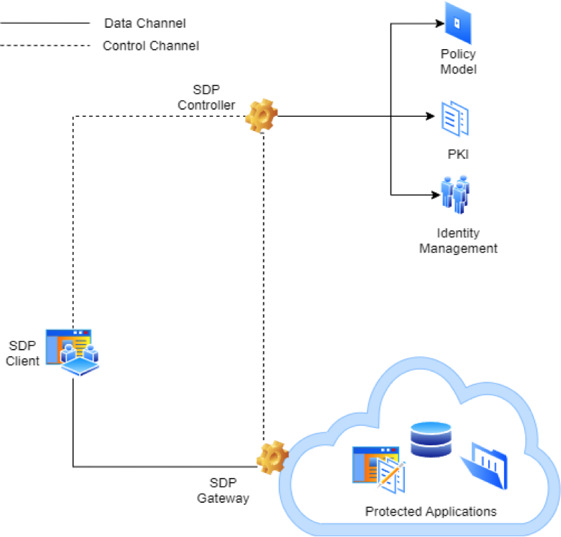 L’SDP implementa un modello di zero-trust, che si basa sul principio “Never trust, always verify”. Qualsiasi dispositivo che desideri entrare a far parte della rete dovrà essere verificato e approvato dagli amministratori della rete. Nessun dispositivo non autorizzato potrà dunque accedere alla rete, previa autorizzazione. In tale approccio inoltre ogni utente/dispositivo avrà solo e soltanto le autorizzazioni di cui ha bisogno per effettuare i propri compiti.