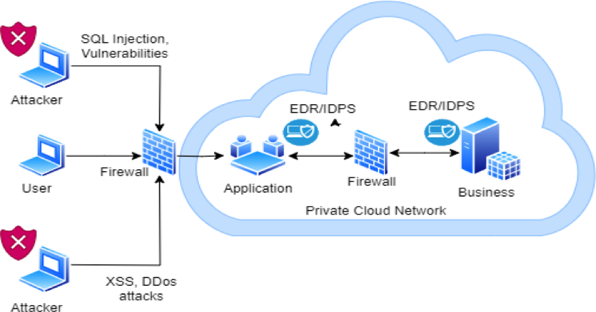 Ogni risorsa sarà quindi protetta da un firewall dedicato e il traffico in ingresso e uscita monitorato da appositi strumenti quali IDS/IPS e relativi EDD/XDR sulle relative macchine. Questa difesa a strati con richieste d’accesso controllato e continuo monitoraggio consentono un elevato livello di sicurezza delle risorse. Inoltre qualora la macchina in essere risulti compromessa sarà sufficiente isolare solo una specifica area garantendo la continuità degli altri processi, laddove possibile.